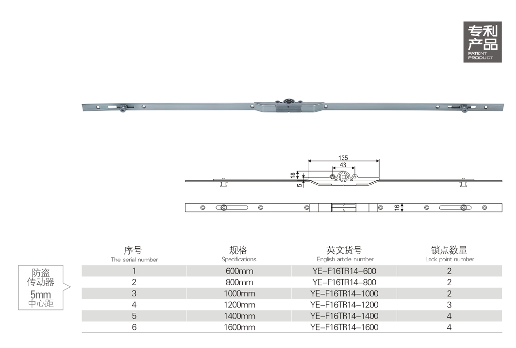 5 mm centre distance of anti-theft transmission
