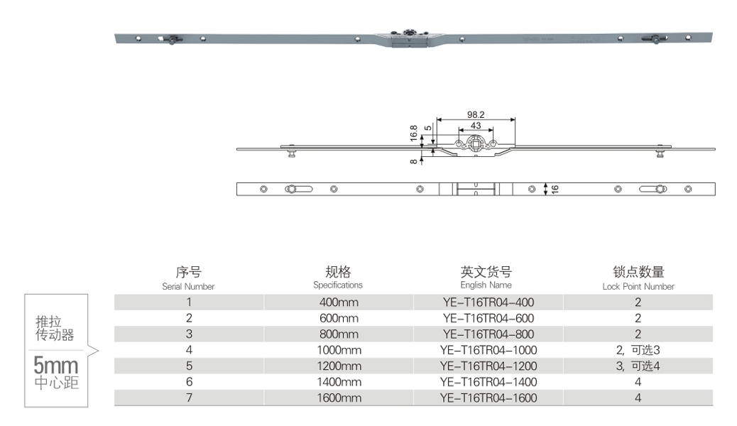 5 mm centre distance of push-pull drive