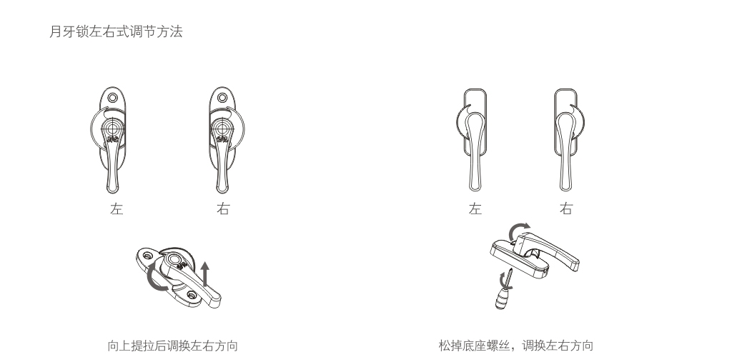 Left and right adjustment of crescent lock